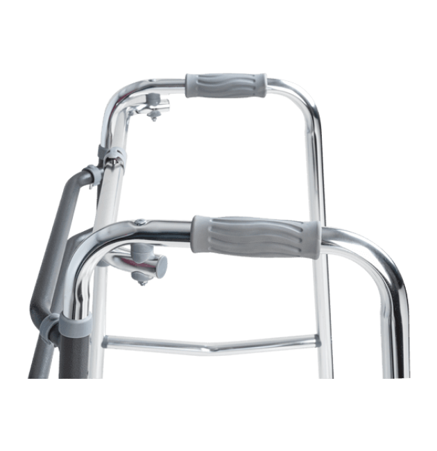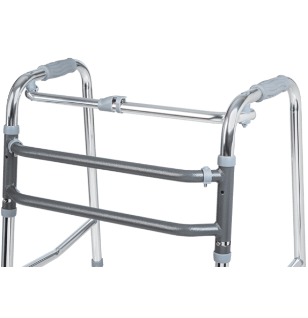 O Andador D10 Dellamed de alumínio é 3 em 1 (Fixo, articulado e móvel) e possui 3 barras.
